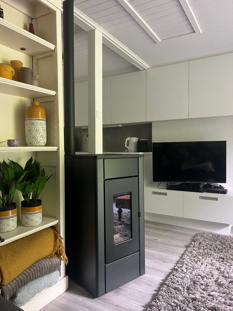 - Gezellige en lichtrijke leefruimte met pellet kachel